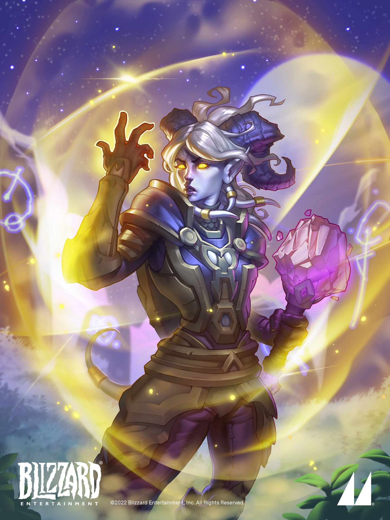 High Exarch Yrel in the Madness at the Darkmoon Faire in Hearthstone.