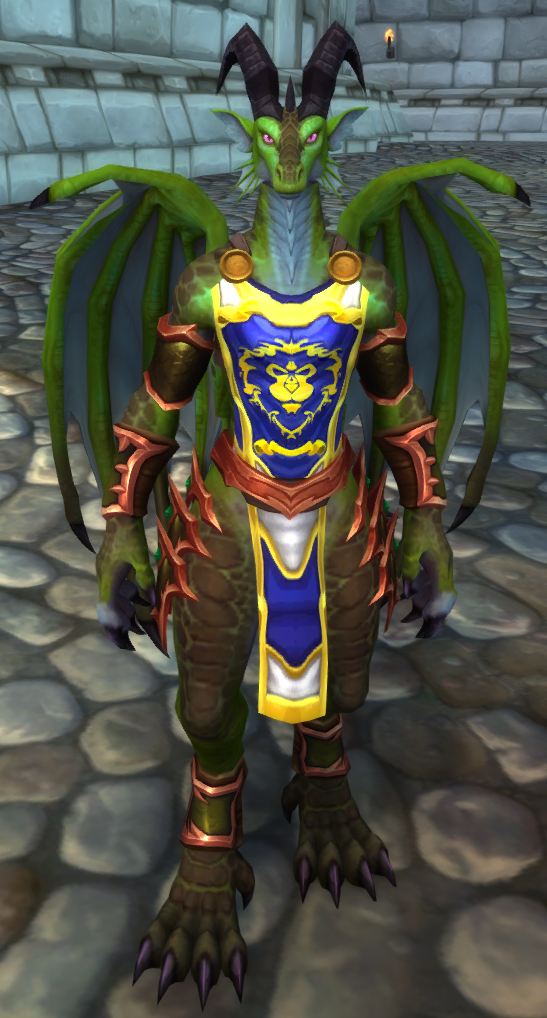 Zaralash is a dracthyr located just inside the Trade District in Stormwind City. She is found speaking with a Stormwind City Guard.