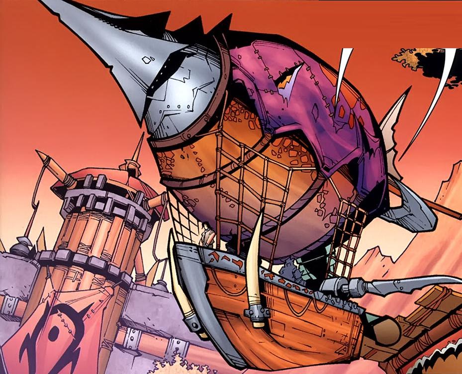 A goblin zeppelin consists of a gondola of varying size suspended beneath one or more bags of lightweight gas that serve to keep the craft aloft. In keeping with the goblin fixation upon profit, these large crafts tend to be packed with cargo or paying passengers.