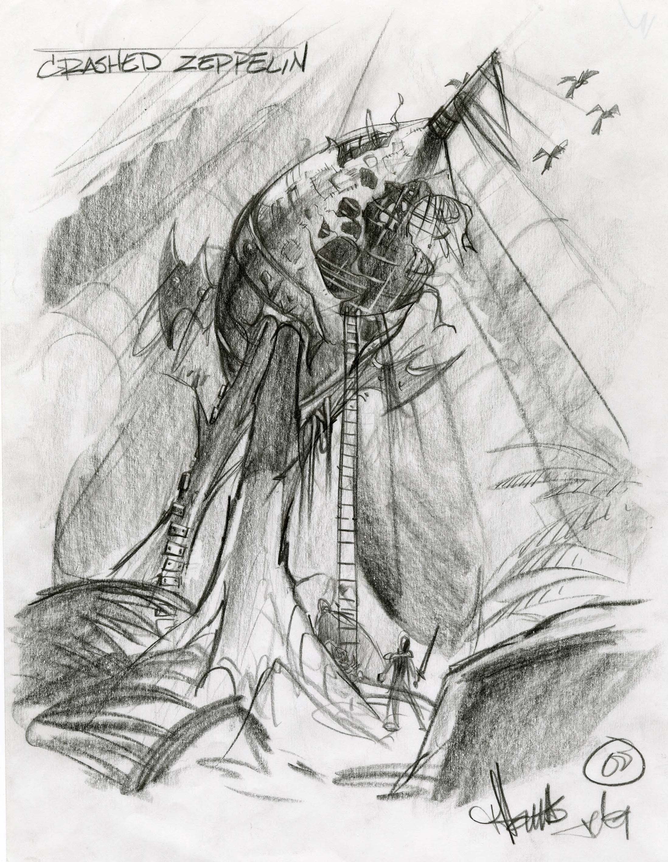 More crashed zeppelin concept art.