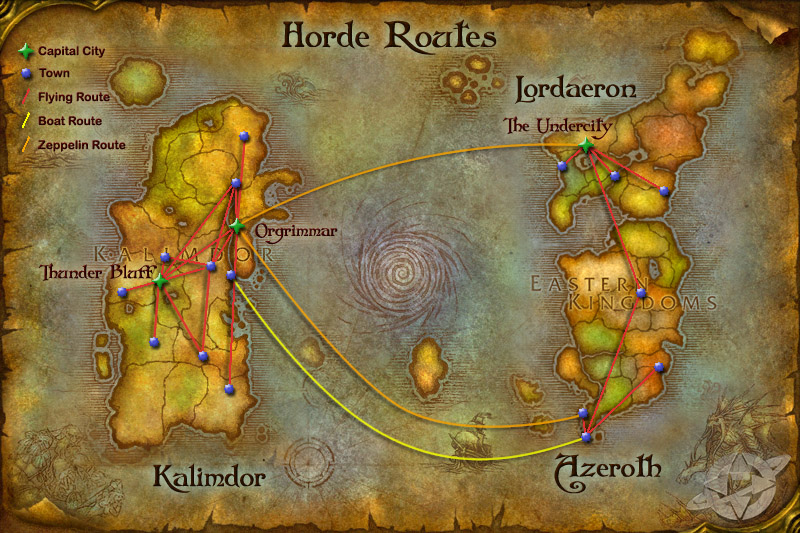 Horde zeppelin routes in the original World of Warcraft.